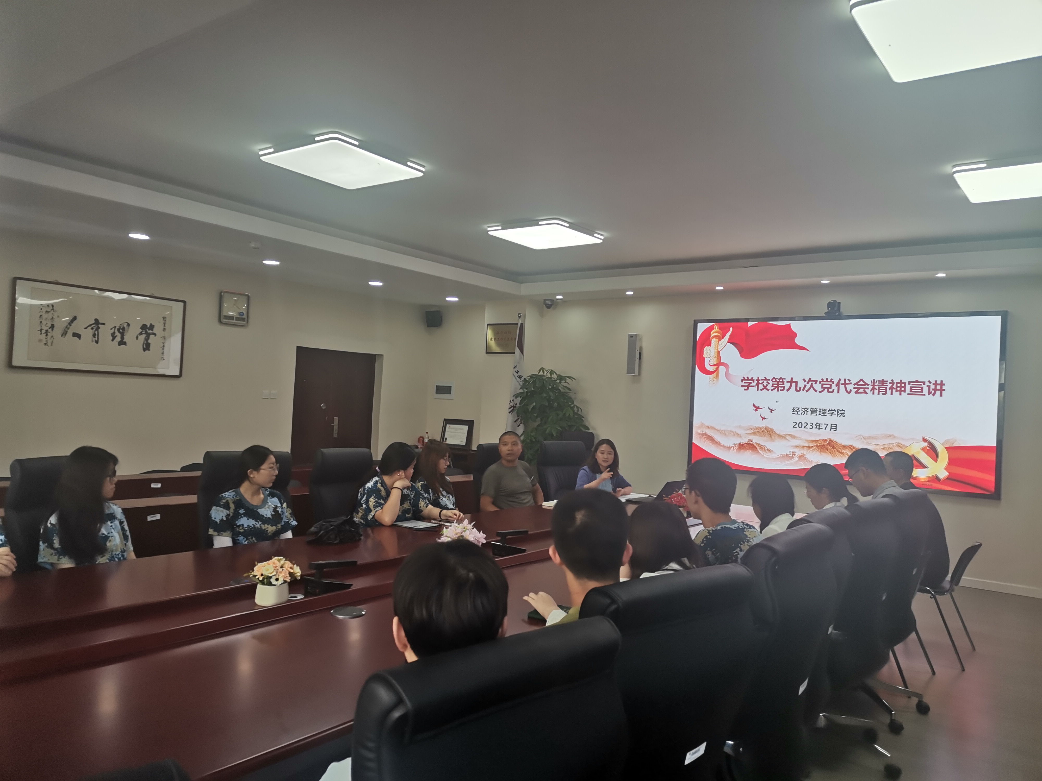 为深入学习贯彻学校第九次党员代表大会精神,把思想和行动统一到校党委要求和部署上来,在学生中凝聚起爱校兴校荣校精神,激发奋斗情怀,7月4日下午,pp电子官方网站在励学楼201会议室组织学生代表认真学习会议精神。学院各年级辅导员、学生骨干代表共计20余人参加此次活动。