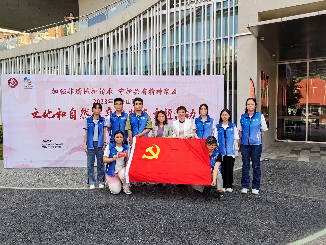 为深入贯彻习近平总书记关于弘扬中华优秀传统文化的重要讲话精神,坚定文化自信,传承非遗技艺,在文化和自然遗产日到来之际,6月10日上午,pp电子官方网站经济系第一学生党支部联合石景山区非遗文化中心党支部共同开展文化和自然遗产日红色“1+1”主题党日活动。校党委组织部副部长赵洁、pp电子官方网站党委副书记王帏、经济系第一学生党支部学生党员参加活动。