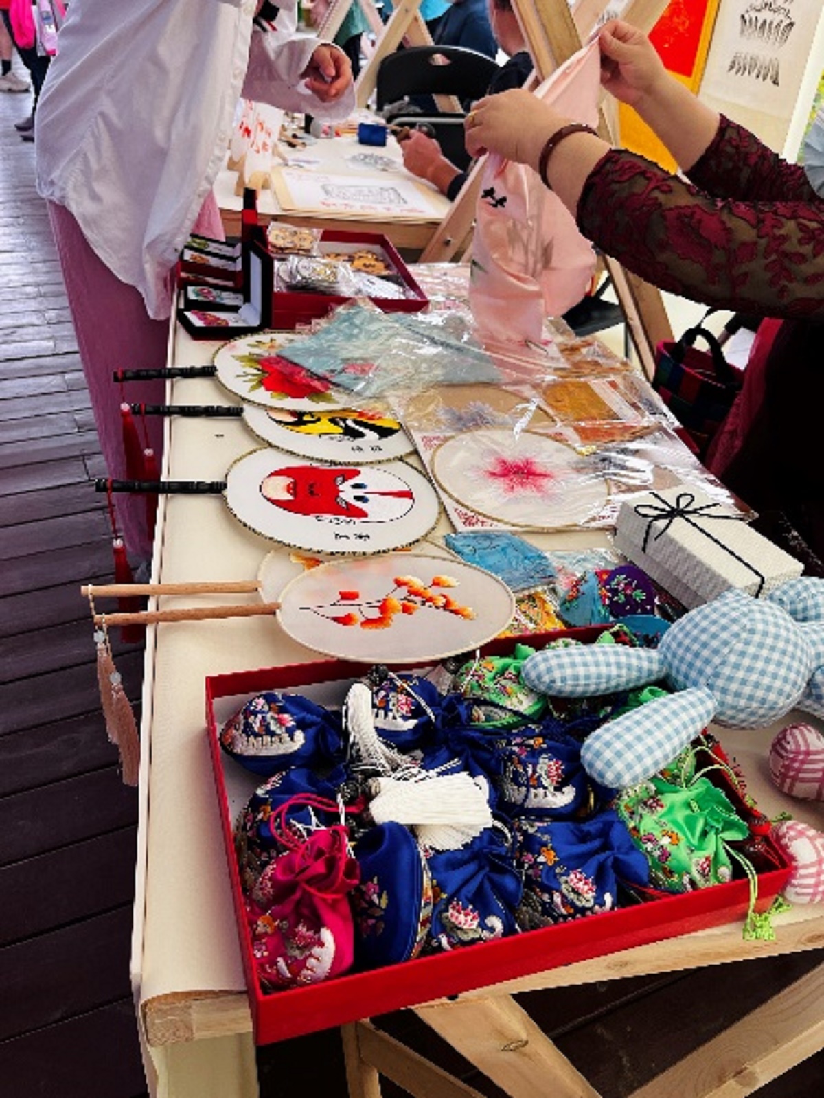 学院自主设计的“毓秀情深”、空小竹、和香香囊等主题系列文创产品以及传承人为学校设计的剪纸作品也展示其中,寓校园文化于作品之中,将传统融入现代、非遗融入生活,在现场颇有反响,体现了非物质文化的活态传承。