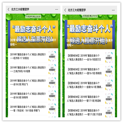 为进一步挖掘身边的优秀典型案例,讲好自己的励志故事,学院于近期开展了“最励志奋斗个人”的评选,通过候选人推荐、学院初评、网络展示,最终确定了10位候选人。本周,学院组织“最励志奋斗个人”投票评选,由各班推选出的学生代表进行投票,最终五名同学获得该荣誉称号,并将在年底学院学风总结大会中进行颁奖。