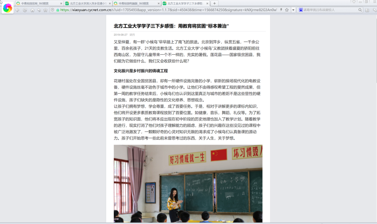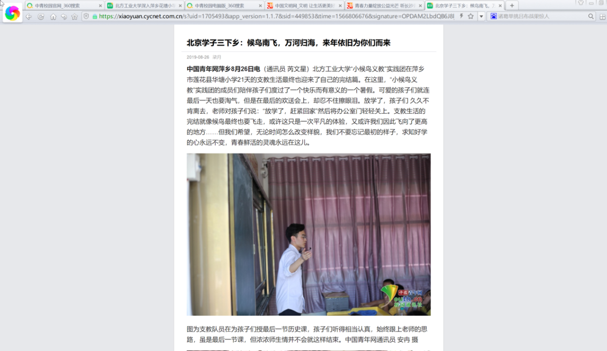 3、中青网(三下乡官网)多次报导“小候鸟”义教实践团活动