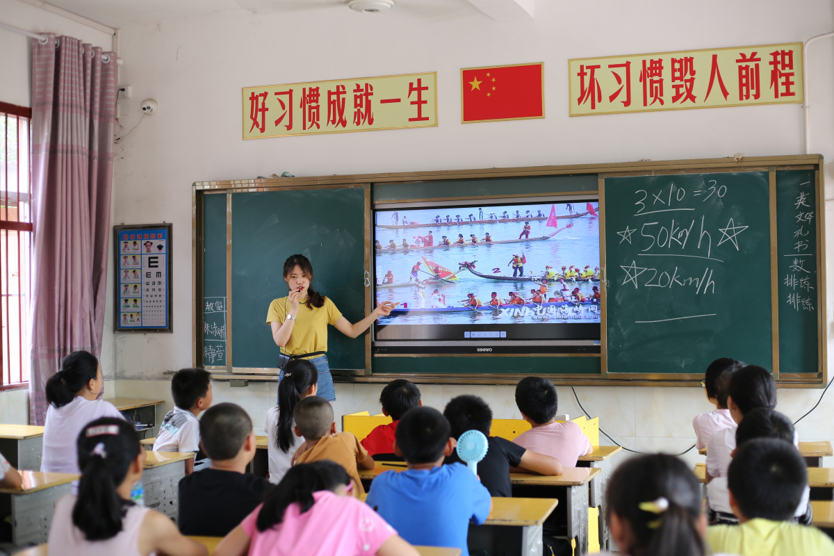 在教学初期支教大学生们发现花塘小学的孩子们缺乏对世界充分了解的途径,实践团本着“教书育人两手抓”的原则和“虽千万里吾往矣”的精神在支教过程中一直坚持言传身教,以身作则,在教孩子们文化知识的同时更在引导孩子们树立远大的志向和目标。鼓励孩子们要先走出农村,再反哺农村,以建设更好的家乡为己任,为祖国的乡村振兴建设贡献新生力量,为中华民族伟大复兴提供源源不断的动力。