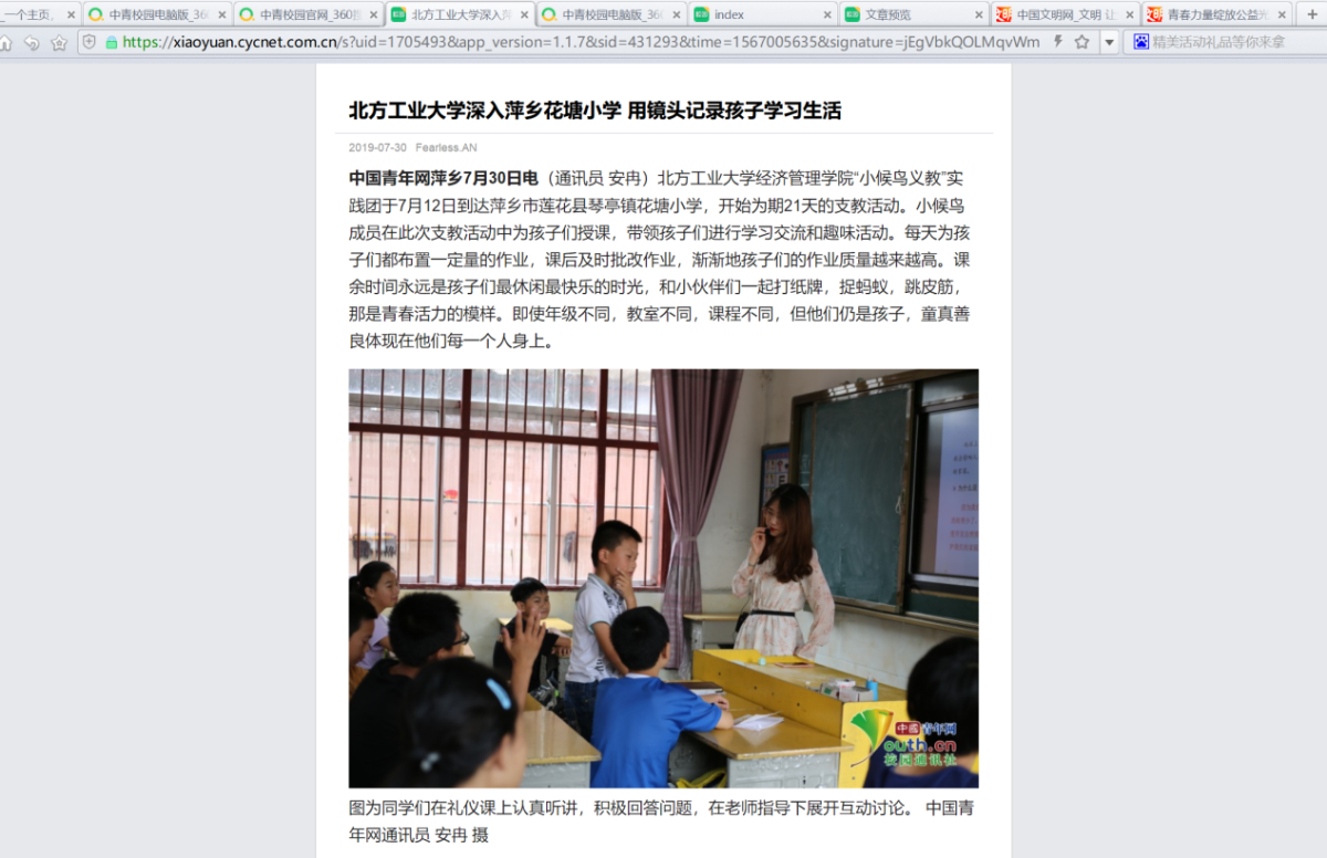 本次支教活动也被中国文明网,江西日报数字报,以及中青网(三下乡官网)等媒体大力报道。