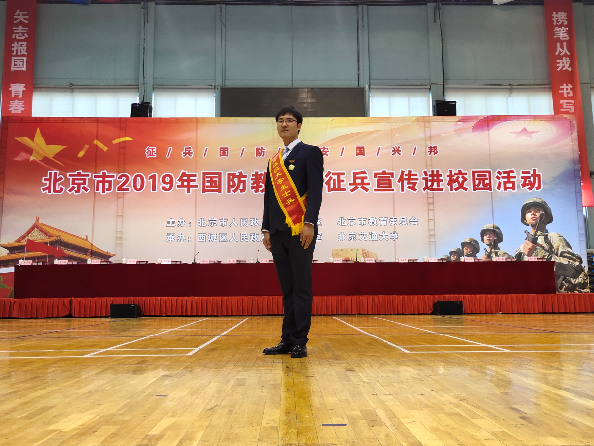 5月11日下午,北京市2019年国防教育暨征兵宣传进校园活动在北京交通大学体育馆举行。pp电子官方网站研究生刘晨阳同学获评2019年度北京市优秀在校退役大学生士兵,并入选北京市优秀退役大学生士兵宣讲团。