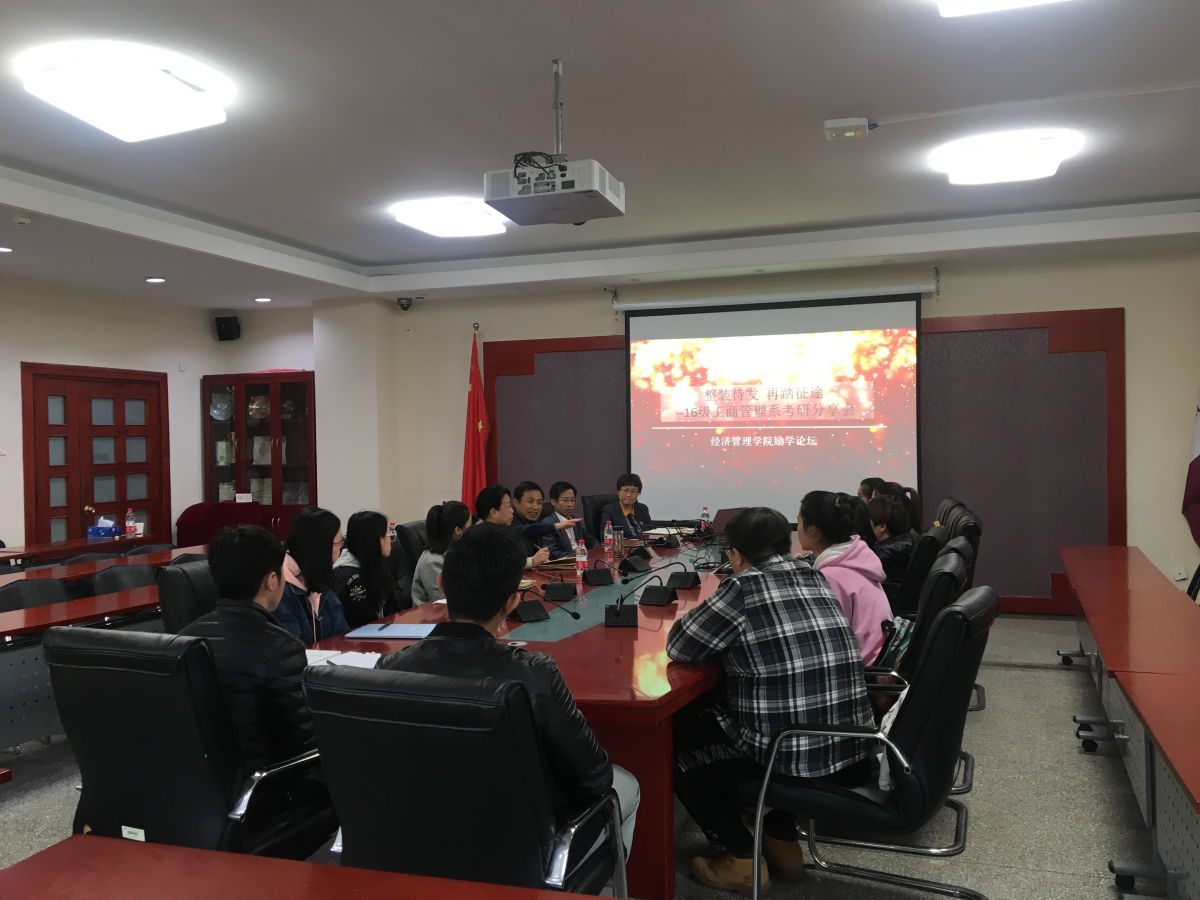 4月28日下午,pp电子官方网站在励学楼201会议室组织了管理专业考研分享师生面对面交流活动,本次论坛邀请到了企业管理方向责任教授张欣瑞、管理系主任郑强国、管理系教工党支部书记范景军,本次论坛由学院党委副书记赵洁主持。