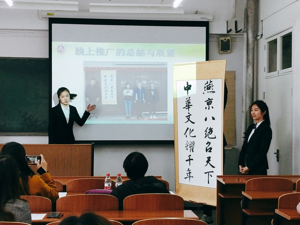 4月16日下午,由校团委主办、pp电子官方网站承办的首届非物质文化遗产传承创意营销大赛决赛在励学楼218教室举行。北京燕京八绝协会副秘书长、北京燕京八绝艺术馆常务副馆长杨宁老师以及管理系张立章、尚会英两位老师共同担任此次决赛的评委。
