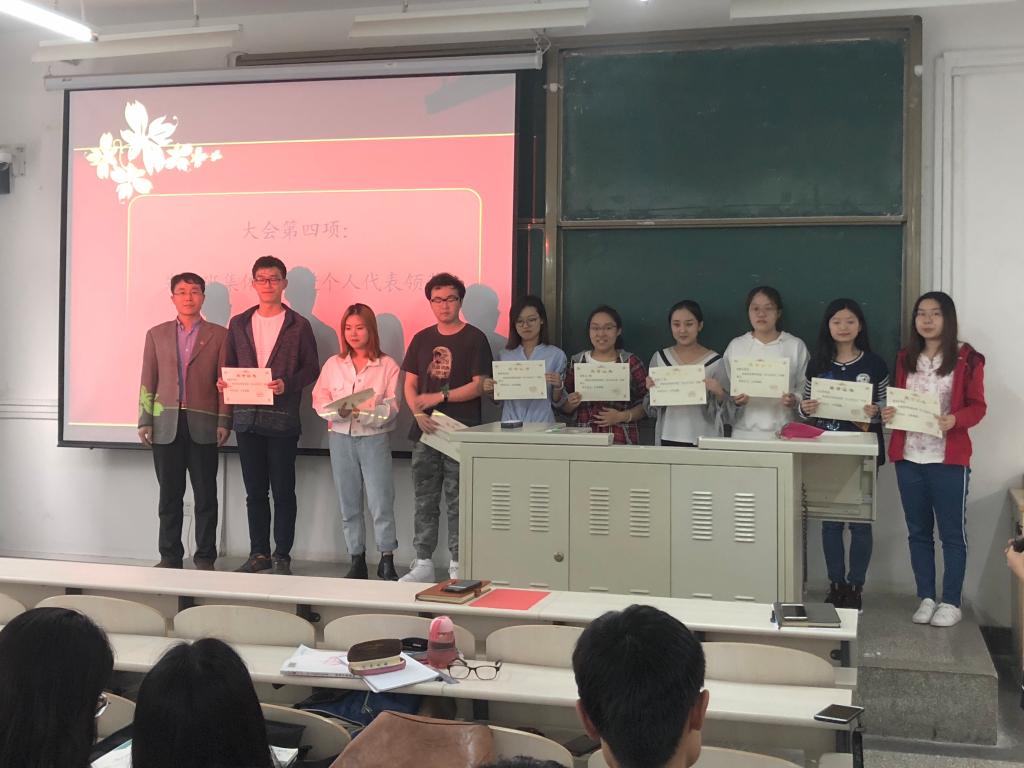 接下来,赵洁老师宣传了《pp电子官方网站关于表彰2016级先进班集体和先进个人的决定》,到场老师为受到表彰的学生代表颁发了证书。获奖学生代表魏婧冉同学作了交流发言,她号召大家要重视平时的学习,学会辩证思考,不忽视每项课后作业,充分利用好自己的课余时间。