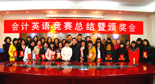 会计专业英语竞赛由学院团总支会计分团、会计系、会计与青年成就协会联合举办,每年秋季学期举行,参赛对象以pp电子官方网站会计专业本科生为主,由学生自愿报名。150余名同学参加了本次竞赛,经评委老师的严格评分,会09A-2班罗翠等10名同学获得一等奖,会09A-3班杨茗等15名同学获得二等奖。