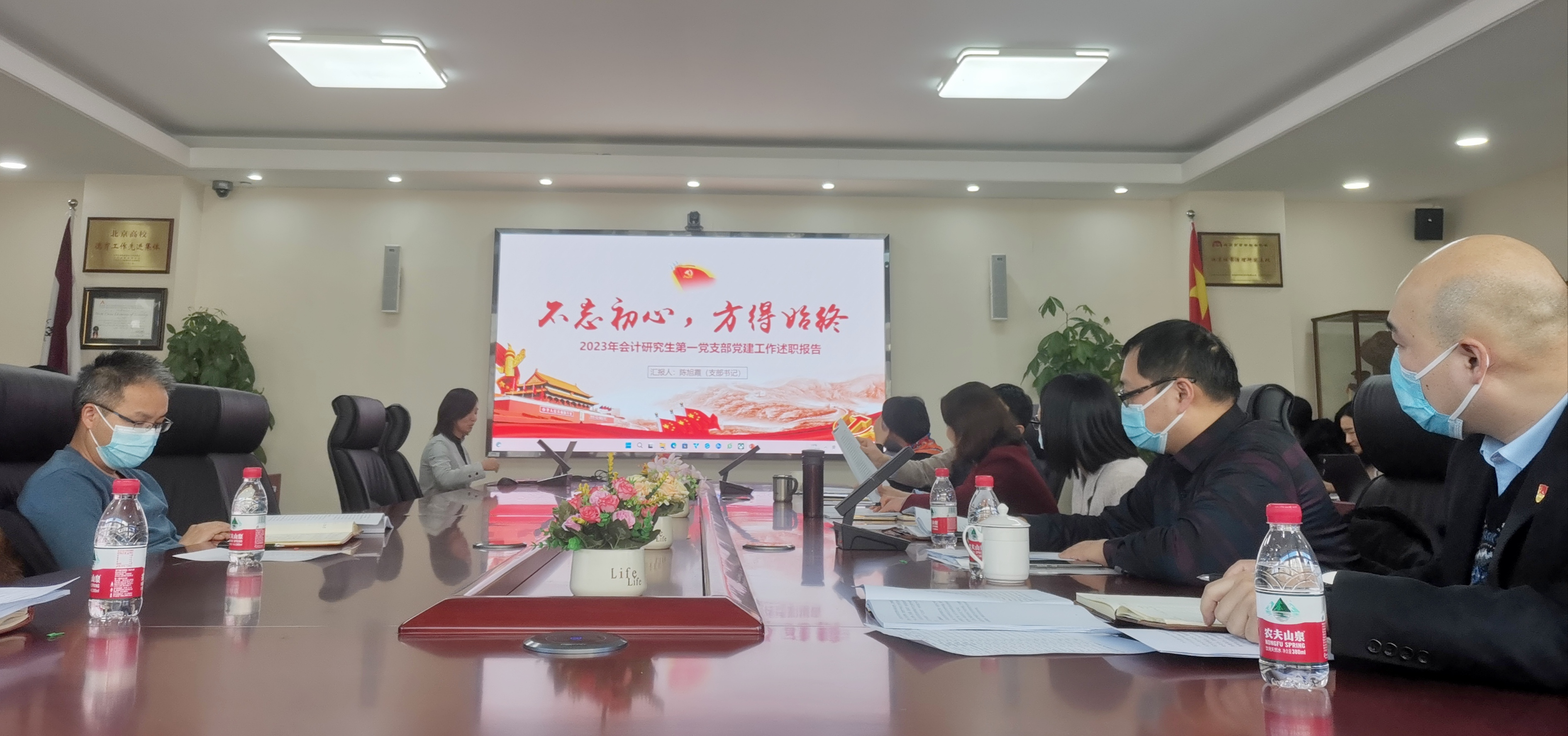 各党委委员逐一作点评,学院党委书记谢朝阳对述职工作进行总结并部署了2024年支部建设工作。他充分肯定了各支部在过去一年的基层党建工作中都有自己的思考和特色。在对2024年的工作进行部署时,他强调作为党支部书记首先就要有信仰和爱,筑牢信仰之基,用大爱感动师生,用钻研劲头开展工作。2024年,支部工作要以“做减法、提质量”为总基调,围绕学院发展核心工作,实现党建和业务相统一,突出特色,创建标杆党支部,做有组织的红色“1+1”活动,使学生和老师在党日活动中有收获有成长。在充分发挥党员先锋模范作用方面,他指出要以主题教育实效助推高质量发展,继续以党员公开承诺为抓手,年底组织生活会和民主评议检验践诺情况,通过就业专项行动等学院重点工作检验主题教育成果。最后,他希望各党支部凝成合力,全院“一盘棋”,发挥党支部战斗堡垒作用和党员先锋模范作用,为建设有特色、有实力、有效益、有文化的“四有”经管学院作出应有贡献。