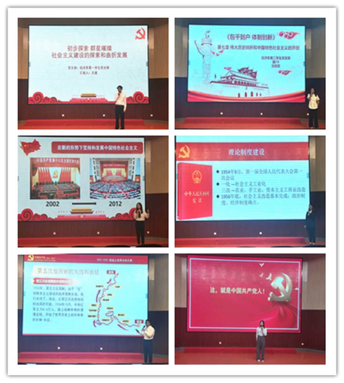 现场,各位宣讲团成员进行了党史故事讲解的汇报展示,同学们按照中国共产党百年征程的时间表,分章节依次讲解了不同时期的党史故事。同学们以生动活泼的案例,深入挖掘党在不同历史时期的党史故事,重温了党带领人民奋斗百年的宏伟征程,增强了党史学习教育的感染力和吸引力。同学们在讲述党史故事中,表达了听党话、感党恩、跟党走、做贡献的青春志向。