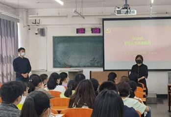 2020年9月17日下午,pp电子官方网站会计系第一学生党支部书记吴伟容老师在励学221教室对会20-1班、会20-2班同学开展了新生入党启蒙教育会,蒋云飞主持会议。