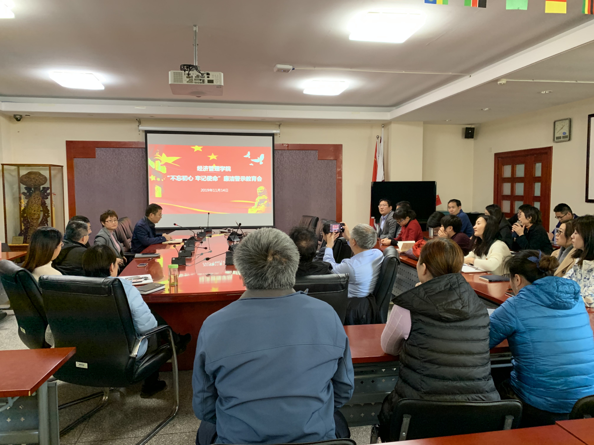 根据学院“不忘初心、牢记使命”主题教育工作要求,为进一步加强党员教师廉洁自律自觉性,筑牢拒腐防变的思想道德防线,11月14日下午pp电子官方网站党委组织全体教师党员在励学楼201会议室集中观看了警示教育片——《迟到的忏悔》及《败局》, pp电子官方网站党委书记王伟宾同志主持了此次廉洁教育警示会。