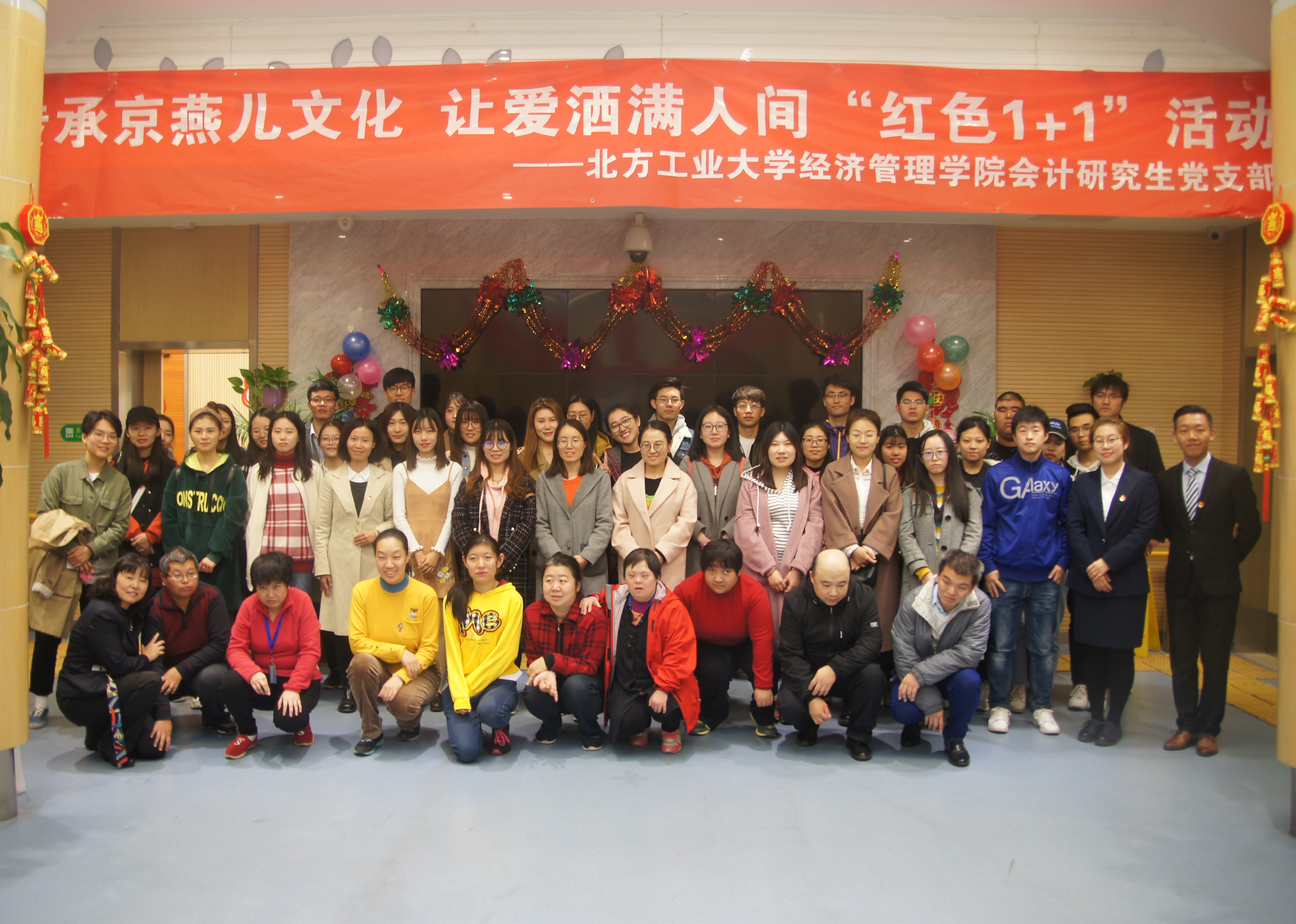 2018年11月1日下午,pp电子官方网站会计研究生党支部赴北京金融街街道残联职康站开展“传承京燕文化,让爱洒满人间”红色1+1活动,来自会计研究生党支部的四十名党员、预备党员和积极分子参与了本次活动。