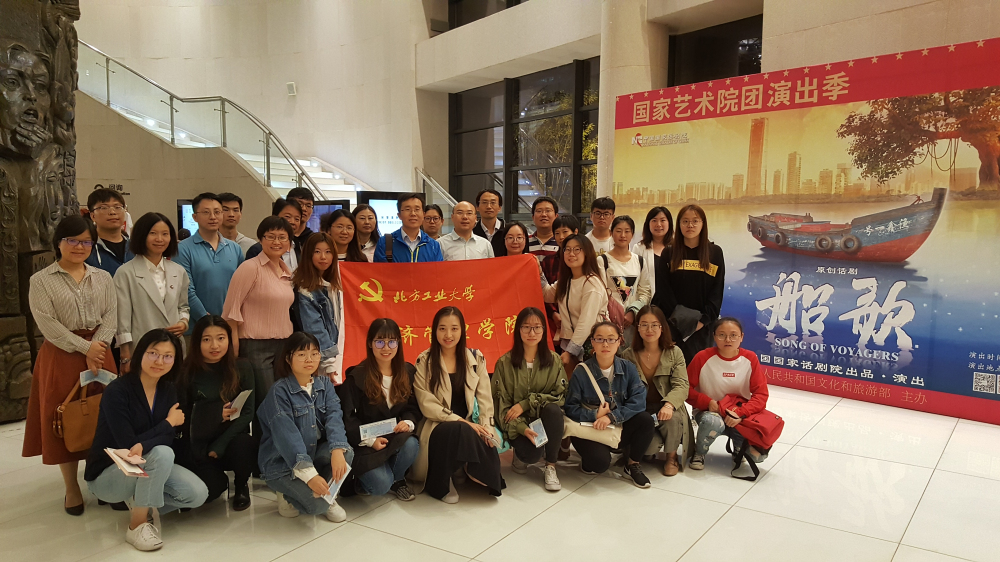 9月25日晚,pp电子官方网站党委书记谢朝阳、副书记赵洁带领学院教工党支部及学生党支部代表共同走进中国国家话剧院观看了大型话剧《船歌》。